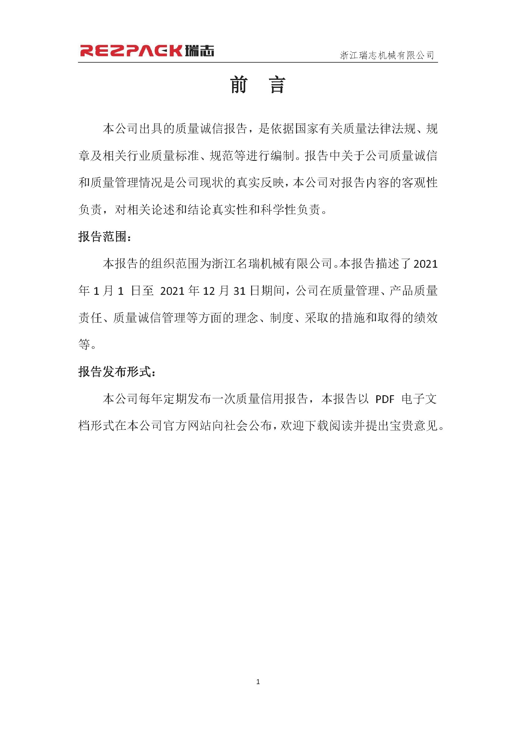 瑞志质量诚信报告